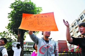 昨日下午4時(shí),數(shù)10名家長(zhǎng)聚集在了該幼兒園門(mén)口,部分心情激動(dòng)的家長(zhǎng)還打出了寫(xiě)著“堅(jiān)決反對(duì)漲價(jià)”和“退回多收學(xué)費(fèi)”的牌子。