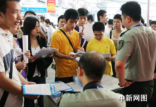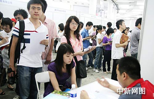 中新網(wǎng)重慶6月15日電 (郭虹 孟幻) 15日,重慶市2009年普通高校畢業(yè)生就業(yè)雙選會(huì)舉行,370多家用人單位提供近1萬3千個(gè)崗位,吸引了上萬名畢業(yè)生前來求職。