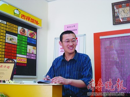 經(jīng)過(guò)考察,王欣欣得知吉祥餛飩店是一家加盟連鎖店,操作流程簡(jiǎn)單,適合他創(chuàng)業(yè)初期的選擇。家是臨沂的他選擇了把店開在濟(jì)南!半x家近,而且這邊有個(gè)親戚!