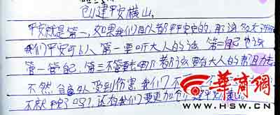 她在這段題為《創(chuàng)建平安橫山》的日記里寫道:如果我們每個人都平平安安的,那該多好。〔还芤ツ,都該要有大人的幫助去,不然會意外受到傷害,我們不要去不平安的地方,不就平安了嗎?