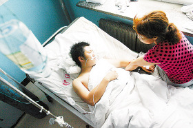 “我們什么情況都不知道,接到學(xué)校通知時(shí),孩子已經(jīng)被送到醫(yī)院了!”趙醒的母親不斷地給兒子揉手,“學(xué)校只告訴家長(zhǎng),孩子出事了,別的也沒(méi)說(shuō)什么!薄昂⒆邮潜焕渍鹇榱耍 壁w醒的奶奶說(shuō)。