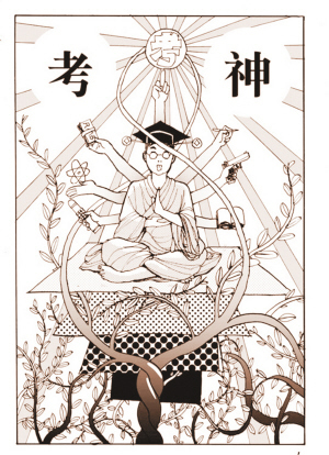 “考神”,全稱為“考試必過神”,原是校內網(wǎng)上虛擬人物”。隨著“掛科了沒?”這句話成為南京各所高校學生見面的問候語,補考前在“考神”公共主頁上發(fā)帖“拜考神”,也已成為大學生的一種另類時尚。