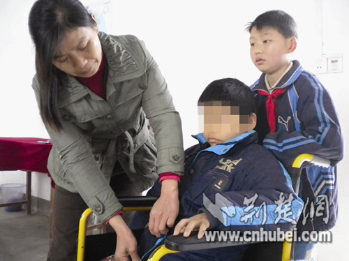 雖然兒子在學(xué)校有老師和同學(xué)照顧,但林雙榮不愿過多給老師們添麻煩,有時(shí)課間也趕到學(xué)校,背著兒子去上廁所。為了照顧兒子,她經(jīng)常在路上來回奔波10多公里。因?yàn)榛疾∽鲞^手術(shù),林雙榮身體很虛弱,但是為了兒子,她只能默默地承受著。