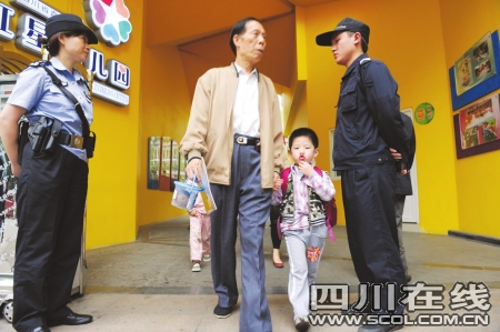 成華警方表示,繼對(duì)轄區(qū)學(xué)校實(shí)行“一校一警”后,從昨日起,轄區(qū)內(nèi)所有幼兒園也安排了警察執(zhí)守上下學(xué)時(shí)段。執(zhí)勤民警佩帶了伸縮警棍、催淚瓦斯和手銬等單警裝備。該區(qū)目前還啟動(dòng)了社區(qū)保安聯(lián)動(dòng)機(jī)制,同時(shí)在校內(nèi)外安裝監(jiān)控、聯(lián)網(wǎng)報(bào)警系統(tǒng)等。