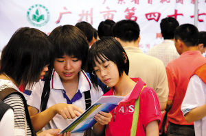 在廣州市司法職業(yè)學(xué)校、廣州市交通高級技工學(xué)校攤位現(xiàn)場,記者發(fā)現(xiàn),有家長甚至是帶著學(xué)費來找校方報名的!皬V州亞運帶動城市地鐵發(fā)展,未來每個地鐵站將會配備10人左右的保安隊伍。我們學(xué)校的地鐵保安專業(yè)今年預(yù)計招五六十人,今天來預(yù)留資料的學(xué)生數(shù)就已經(jīng)超過這個數(shù)目,招生情況很火爆!睆V州市司法職業(yè)學(xué)校校長黃耀壯介紹道。
