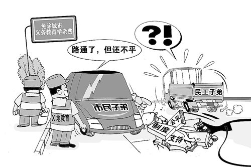 7月30日召開的國務(wù)院常務(wù)會議決定,從2008年秋季學(xué)期開始,在全國范圍內(nèi)全部免除城市義務(wù)教育階段學(xué)生學(xué)雜費。會議提出了四點要求,其中第三點最引人注目:要切實解決好進城務(wù)工人員隨遷子女就學(xué)問題。根據(jù)規(guī)定,此后,符合一定條件的外來務(wù)工子弟將可以與城市孩子享受同等的教育待遇,這必將進一步推動城鄉(xiāng)教育公平。(7月31日《人民日報》)