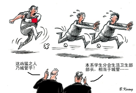 區(qū)區(qū)一件衛(wèi)生檢查的小事,何以弄成一樁血案?學(xué)生干部及學(xué)生之間的溝通對話能力為何如此之弱以至于拔刀相向,值得家長及教育人士思考。而學(xué)生會干部的“過度執(zhí)法”,是否也折射了學(xué)生會這個“準(zhǔn)官場”的惡習(xí)呢? 文/丫丫