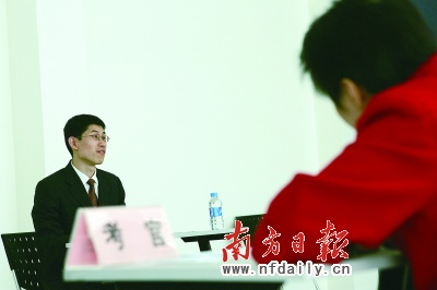 記者在現場看到,不少警校出來的考生都身穿警服來面試,這群“準警察”在西裝革履的考生群中尤為醒目,但他們在進入考場上交手機等通訊工具時,隨即被要求把警號摘下,以免在面試過程中透露個人信息,影響考試的公平性!霸鞠M诿嬖囍汹A取一些形象分和同行分,但效果并不大。”一名考生對記者說。參與面試的7名考官中,只有兩名是來自公安系統(tǒng)的同行,其余5名皆是來自其他行局的考官。