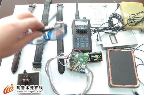 1月14日,在自治區(qū)無線電管理辦公室里,記者見到了收繳的各種無線電作弊工具,有手表、眼鏡、項圈,也有比指甲蓋還小的接收裝置。據(jù)介紹,在1月10日-11日的考試中,烏市共監(jiān)測到可疑信號12個,查處5個發(fā)射作弊信號源,對其余信號運用相關技術手段進行壓制阻斷。查處涉案筆記本電腦2個,5個無線電發(fā)射設備,4套無線電接收設備,涉案人員共11人。