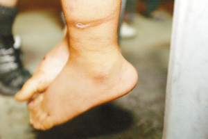 記者數(shù)了一下,在淘淘身上的10多處傷痕中,除了3處是自己造成的,其余的全部是媽媽在兩天內(nèi)“制造”的。工具除了鍋鏟、繩子、還有剪刀。淘淘說,身上很疼心中很怕。