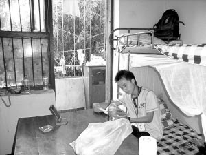 “我們在這里生活無憂,而且每天都還有志愿者和社會各界人士來探望!币覀ケ晦D(zhuǎn)移到成都中醫(yī)藥大學下汪家拐校區(qū),和小尹同安置在該校區(qū)的還有他學校的70多名高三同學。他住在一幢6層的宿舍樓,宿舍內(nèi)窗明幾凈,地面整潔,床鋪全是新的,枕頭也是新的,甚至書本也是新的。“全是政府配置的,書本則是志愿者送的”。小尹坐在床邊的桌子旁,復(fù)習著功課。小尹說,在這里他不僅感受到了溫暖,更可以安靜迎考,他一定要考好,否則對不起幫助他們的人。