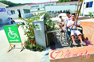 在北川中學(xué),一條用簡(jiǎn)易木板搭建起來(lái)的殘疾人過(guò)道已經(jīng)開(kāi)始使用。曹景榮 攝