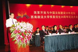 論壇伊始,張軒首先代表市委、市政府向各位領(lǐng)導(dǎo)和來(lái)賓表示熱烈的歡迎。她說(shuō):“改革開(kāi)放30年來(lái),我國(guó)的民主法制建設(shè)取得了巨大的成就,這其中有西南政法大學(xué)及其學(xué)子們的一份可貴的貢獻(xiàn)!