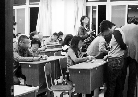 教學(xué)點的墻上貼著一些學(xué)生的進步成績表,一名男咨詢員指著其中一個高三學(xué)生的名字說,這個孩子全科補,不在學(xué)校晚自習(xí)了,家長為此已投入7 萬多元!盀榱撕⒆拥膶恚度脒是值得的。”他說,“孩子在學(xué)校晚自修效率不高,學(xué)校老師要管很多學(xué)生,如果你孩子不主動,老師也很難顧及到。”