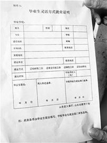 該校機(jī)械工程系一名學(xué)生告訴記者:“我們明年7月才畢業(yè),這兩天班主任給我們每人發(fā)放了一張‘畢業(yè)生靈活方式就業(yè)證明’,讓我們自己到校外聯(lián)系單位,并讓用人單位在這張證明上蓋章。班主任老師說(shuō)了,交不上這份就業(yè)證明,學(xué)校就不給畢業(yè)證。我們現(xiàn)在很為難,因?yàn)橛萌藛挝坏墓虏皇请S便就給蓋的。”