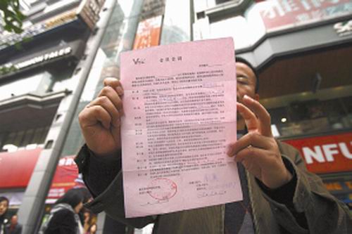 一學(xué)員拿著合同書(shū)向記者投訴。記者 高科 攝