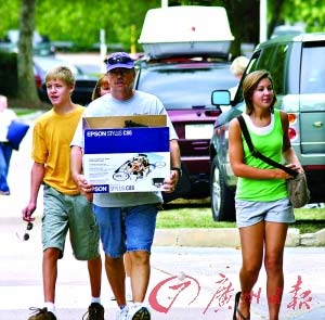 因此,每年美國大學(xué)新生報到時,許多家長都會“護(hù)送”孩子到學(xué)校。家長只要有條件,一定要到孩子所上的大學(xué)去看一看。美國學(xué)生家長一般都認(rèn)為,家長有責(zé)任對孩子生活、學(xué)習(xí)環(huán)境加以了解。他們將教育看成對孩子一項最大的投資,因此從擇校到錄取到報到,他們覺得有必要全程跟蹤,全方位了解自己的子女未來生活四年的地方。