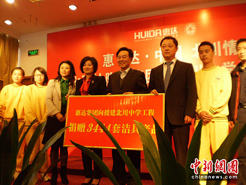 中新網(wǎng)綿陽(yáng)4月19日電 (徐楊祎)“從唐山到北川,盡管路途遙遠(yuǎn),但我們的心是貼在一起的!19日下午,唐山惠達(dá)集團(tuán)執(zhí)行董事總經(jīng)理王彥慶在北川中學(xué)捐贈(zèng)儀式上說(shuō)到。本次捐贈(zèng)是由唐山惠達(dá)集團(tuán)向即將落成的新北川中學(xué)捐贈(zèng)百萬(wàn)的節(jié)水潔具。