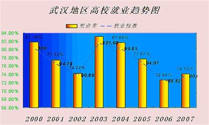 昨日,武漢市大中專畢業(yè)生就業(yè)管理辦公室發(fā)布“2007年度武漢地區(qū)大學畢業(yè)生就業(yè)率指數(shù)報告”,稱去年武漢市大學畢業(yè)生就業(yè)率達到74.12%,比上年高出1.48%,自2004年以來首次出現(xiàn)回升。