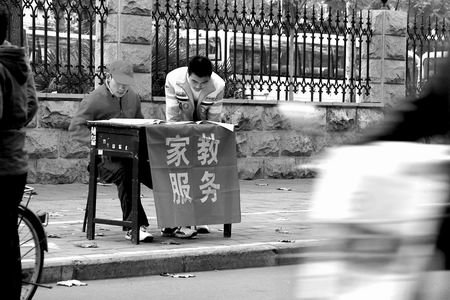 “暑假前半個(gè)月,招工廣告就遍布校園。南方的加工企業(yè)和保安公司的居多,所以,想暑假掙些錢又不想呆在學(xué)校的同學(xué)報(bào)名踴躍。而不想離開學(xué)校的同學(xué)有的做家教,還有一些有經(jīng)驗(yàn)的高年級(jí)學(xué)生辦起了暑假輔導(dǎo)班,用自己大學(xué)生的知識(shí)優(yōu)勢(shì)輔導(dǎo)中小學(xué)生。但更多的同學(xué)是通過街頭小廣告或勞動(dòng)力資源市場(chǎng)尋找適合自己的工作崗位!膘杳系抡f,暑假期間,學(xué)校因?yàn)橛姓猩裙ぷ,也?huì)提供一些打工崗位,但數(shù)量非常有限,大學(xué)生打工的整體情況很難把握。