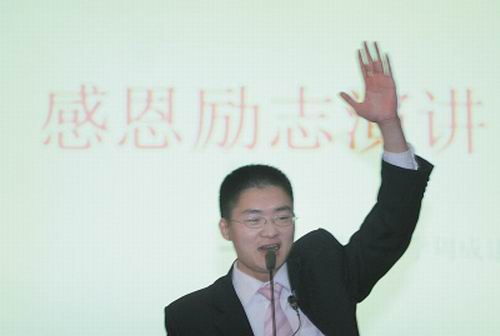 “我的經(jīng)歷其實(shí)就是最好的勵(lì)志故事!”周成建說,他來自四川金堂的貧困山區(qū),記憶中,他的童年從沒吃過飽飯。但周在學(xué)習(xí)上從來都是學(xué)校的“尖子”。2005年,他以615分的高分考入西南政法大學(xué),2006年底,在大二開始了自己的演講生涯,組建了6人的演講團(tuán)隊(duì)。