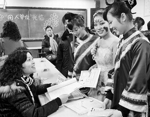 “今年學(xué)生們的總體期望值下降了,以前像寧夏、新疆這些地方要招人,根本沒人愿意去,特別是成績(jī)優(yōu)秀的學(xué)生,工資少于4000根本不考慮,但今年,很多學(xué)生自己降低了要求。”在陜西師范大學(xué)就業(yè)指導(dǎo)中心辦公室采訪時(shí),記者遇到了該校外國(guó)語(yǔ)學(xué)院老師。
