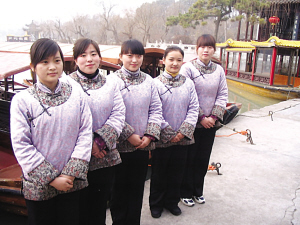 談到兩人大學(xué)所學(xué)專業(yè),唐紅梅介紹說自己去年畢業(yè)于蘇州經(jīng)貿(mào)學(xué)院紡織貿(mào)易專業(yè),小崔非常風(fēng)趣地說:“學(xué)這個(gè)專業(yè)應(yīng)該做經(jīng)貿(mào)部長(zhǎng)!卑熏F(xiàn)場(chǎng)觀眾逗得哈哈大笑。錢悅介紹,自己是揚(yáng)州職業(yè)大學(xué)商務(wù)日語的應(yīng)屆畢業(yè)生!澳銘(yīng)該去中國(guó)駐日本大使館做專員!毙〈薜囊环暗箅y”把兩位船娘逗得既害羞又開心。