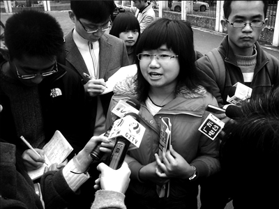 “今天對于我就是趕盡殺絕的感覺。不是說農(nóng)村缺教師嗎?我有心為國家做些貢獻(xiàn),但連個(gè)機(jī)會(huì)都沒有。好像這個(gè)社會(huì)不需要我了,一個(gè)門檻就把我淘汰掉了。搞成好像專為本科生服務(wù),那廣東省那么多高職院系的專科生怎么辦?”這名林姓女生說,她是廣東外語藝術(shù)職業(yè)學(xué)院的大專應(yīng)屆畢業(yè)生,讀了五年英語師范專業(yè),已過英語六級,教師資格證即將發(fā)到手,但當(dāng)天上午走了三四個(gè)小時(shí)若干個(gè)攤位,沒有一家愿意接收簡歷。女生越說越激動(dòng),一度眼泛淚花,“逼問”文傳道長達(dá)15分鐘。