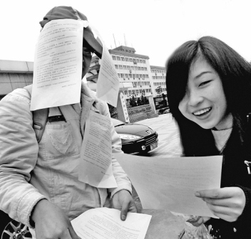 一到樹(shù)人大學(xué)門(mén)口,記者就看到正在派發(fā)“自薦信”的李路,頭頂兩張A4紙、手拿一疊傳單的他,看起來(lái)非常醒目。