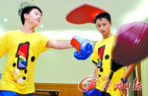 在市21中學生心理輔導室,學生在打沙包發(fā)泄情緒。 邱偉榮 攝