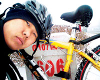 由于沒有買到回老家鄭州的火車票,北航的大二學(xué)生高富松決定騎自行車回家。他1月22日從北京出發(fā),歷時(shí)7天抵家,目睹了冰雪對(duì)沿途居民的影響。昨天,高富松興奮地告訴記者,雖然路上經(jīng)歷了不少困難,但堅(jiān)持到最后的精神讓自己平安到家,而且這次經(jīng)歷也考驗(yàn)了自己的耐力。