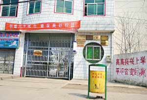 在位于該縣城北部的遂平縣實(shí)驗(yàn)小學(xué)門口,記者看到,該校大門緊閉,有人在大門里面坐著,不時(shí)警惕地注視著外面來往的人。校門口的一側(cè)掛著“五星級學(xué)!薄ⅰ肮芾硪患墝W(xué)!钡扰谱。大門外的墻上寫著“高高興興上學(xué) 平平安安回家”的大紅標(biāo)語,但卻已斑駁了。