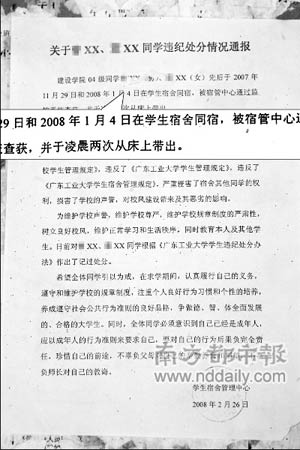 廣州大學(xué)城某工業(yè)大學(xué)通報(bào)處分了一對(duì)學(xué)生情侶