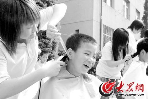 一到濟(jì)南師范學(xué)校,小羅誠就發(fā)現(xiàn),細(xì)心的老師已特意把他安排在了三年級二班。記者趕到時,學(xué)生志愿者正在給羅誠和小伙伴們理發(fā),隨后去洗澡,有的孩子還將進(jìn)行查體。