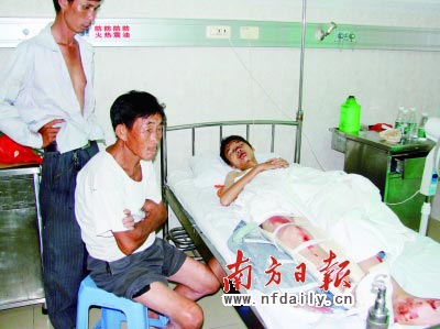 在電白縣人民醫(yī)院6樓,記者看到四肢全部被撞成粉碎性骨折的鄧學(xué)廣。鄧學(xué)廣是陳村中學(xué)初一(7)班的學(xué)生。他回憶說(shuō),早上6時(shí)30分左右他從家中騎自行車(chē)回校上課,等他發(fā)現(xiàn)有小汽車(chē)時(shí),他已經(jīng)被撞上了。鄧學(xué)廣的親人說(shuō),7名學(xué)生全部是男生,都是那行村人。