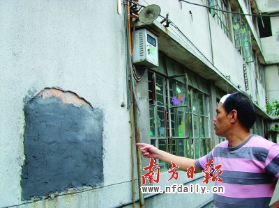紅星幼兒園位于禪城區(qū)福寧路上,屬祖廟東華里拆遷范圍的拆遷戶。昨日上午記者趕到該幼兒園時,由于電線門窗等都遭到破壞,幼兒園正準備搬遷到其他地方。記者發(fā)現(xiàn),該幼兒園的后墻上有一個約1平方米大小的新修補的墻壁,與其它周圍墻壁顏色不同。而該幼兒園主管梁先生氣憤地說,這個新修補的地方原本是一扇窗戶,前天上午拾荒者就是砸爛該窗戶進入院內(nèi)偷竊的,所以后來用磚和水泥將該處封了。