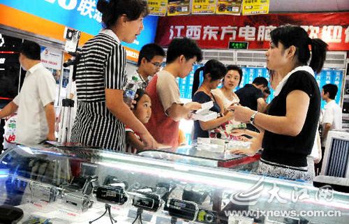 電腦、手機、MP3已經(jīng)成為目前一些家庭經(jīng)濟條件較好的大學(xué)生的“新三樣”,成為學(xué)生新學(xué)期的新裝備。某商場的一名導(dǎo)購員告訴記者,開學(xué)前的這段時間是數(shù)碼產(chǎn)品的銷售旺季,各商家均紛紛采取各種促銷手段來吸引學(xué)生群體。正在南昌市一電子數(shù)碼城購買MP3的大一學(xué)生小王告訴記者,考上大學(xué)時父母就答應(yīng)給她買手機和MP3,今天和媽媽一起出來挑選。