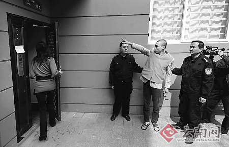 王同學(xué)被押回小區(qū)指認偷盜現(xiàn)場。 江洋 攝