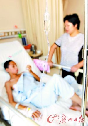 由于病情過重,11日凌晨1時許,便轉送康華醫(yī)院。記者隨后在康華醫(yī)院普胸科病房找到了肖雨。他正在艱難地喝湯。“自從肺被刺穿后,他就經(jīng)?人!毙び甑膵寢屨f。