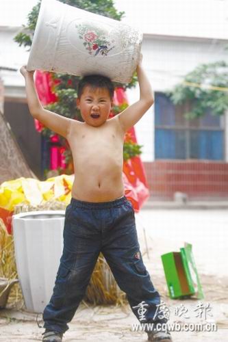 “那個(gè)娃兒在干啥喲?”隨著尖叫聲,幾名男女老師快步趕到面前。一見是徐緯,不約而同笑稱:“原來是我們的小小大力士又在表演了!