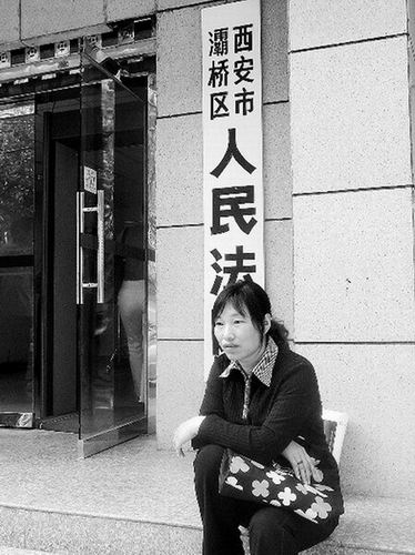 一審?fù)彆r(shí),一學(xué)生家長在法院門前茫然無助。王向前 攝