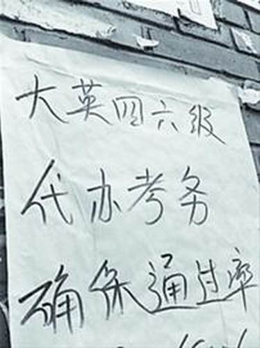 “大學英語四、六級,代辦考務(wù),保證通過!”“包過,四級答案,提供隱形耳機!”最近,類似的小廣告出現(xiàn)在沈陽市個別大學的校內(nèi)論壇甚至水房路邊電線桿。