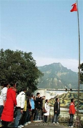 昨天(12月30日)上午11時(shí)許,在綿竹市漢旺鎮(zhèn)東汽中學(xué)操場上,東汽中學(xué)高三理科班的升旗手黃沛、茍明強(qiáng)站在國旗下,緩緩將國旗升起。包括馬小鳳在內(nèi)的另外22名同班同學(xué)用手緊貼在胸前,面對(duì)國旗行注目禮,唱起了國歌。從5·12汶川大地震離開這里后,在本報(bào)的幫助下,這是他們第一次回到曾經(jīng)那么親切、那么熟悉,而如今卻已是一片廢墟的學(xué)校。
