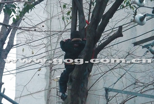 1月7日中午,接到劉女士的反映后,記者趕到位于大營坡附近的一個居民小區(qū)看到,在一棵樹上,一個小男孩背著書包坐在離地面約1米多高的樹上,樹下的劉女士眼中帶淚,焦急地喊著:“涵兒,下來嘛!毙『瓌t告訴母親:“媽媽,我不想去考試,我怕……”“那就不考嘛,你爬到樹上干什么?快下來”,劉女士哭著喊道。小涵說:“爬樹很好玩,什么都不用想!笨匆娔赣H哭了,小涵安慰道:“媽媽別擔心,我現(xiàn)在下來!闭f完,他一下子滑下了樹。