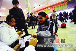 下午6點(diǎn)左右,四人趕到火車站,售票窗口前的隊(duì)伍已排到了大廳門口。10個(gè)學(xué)生窗口在下午5點(diǎn)已經(jīng)關(guān)閉了,但每個(gè)窗口前都排起10多人長的隊(duì)伍,他們都是來通宵排隊(duì)的,這樣次日一早就排在隊(duì)伍的最前面了。