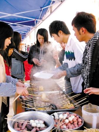 恰好放寒假在家的安鋪大學(xué)生們自然不會(huì)錯(cuò)過這一良機(jī),紛紛報(bào)名展銷。跟擺麻湯辣檔的小洪一樣,高中時(shí)曾是同學(xué)的4名大學(xué)生,銷售糯米雞也收獲頗豐。頭三天,他們收入6000多元,后來發(fā)現(xiàn)糯米雞攤位越來越多,競爭激烈,三人中一人想起小時(shí)候曾吃過“糯米乙”(油炸糯米雞),而“美食街”的100多個(gè)檔位卻沒有一個(gè)賣“糯米乙”的,便決定轉(zhuǎn)賣“糯米乙”。學(xué)了三天后就上陣了,貨源則購自一農(nóng)家。開張后,原來準(zhǔn)備賣一天的“糯米乙”僅半天就告罄。