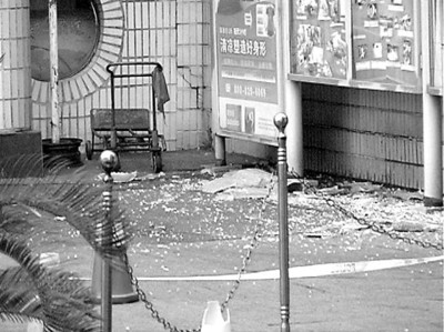 昨日上午,記者趕到現(xiàn)場時,童的夢學校已恢復了正常上課,學生墜樓處附近拉起了警戒線,事發(fā)教學樓下的一宣傳欄的雨篷被砸壞,櫥窗玻璃破碎。玻璃碎片散落一地,地上血跡斑斑,警方和閘北區(qū)教育局相關領導已在現(xiàn)場了解情況。