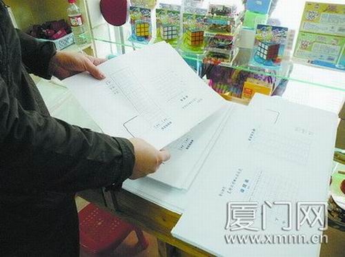 陳同學(xué)和蔡同學(xué)用的都是文具店里常見(jiàn)的一種白色書(shū)皮紙,課本用的是純白的,練習(xí)冊(cè)因?yàn)槔蠋熞怯洺煽?jī),必須用一種印有成績(jī)登記表的!靶iL(zhǎng)說(shuō)可以用掛歷紙,不過(guò)老師都讓我們用買(mǎi)的那種紙!辈掏瑢W(xué)說(shuō)。