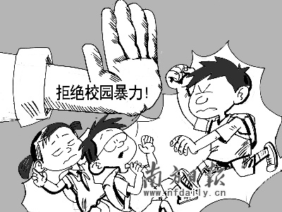 據(jù)省少工委公布的《廣東省中小學(xué)生安全意識調(diào)查報(bào)告》顯示,最近一年,31.8%的中小學(xué)生曾被人踢打或恐嚇?biāo)饕疱X。2007年網(wǎng)上先后傳出東莞、汕頭和廣州中學(xué)校園暴力的視頻;2008年1月16日花都職校女生被同學(xué)圍毆,當(dāng)眾脫褲;7月10日開平中學(xué)女生遭凌辱。這些事件僅是無數(shù)事件中少數(shù)被曝光的,說明我省校園暴力事件有愈演愈烈的趨勢。