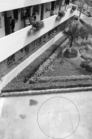 昨日中午12時(shí)許,記者趕到事發(fā)學(xué)校。在事發(fā)宿舍樓2號(hào)樓南側(cè)圍墻位置,仍可看見(jiàn)地面上殘留有一大攤血跡。相關(guān)部門工作人員正在宿舍樓內(nèi)進(jìn)行調(diào)查。據(jù)該樓一名學(xué)生介紹,他們?cè)诹璩?點(diǎn)多聽(tīng)到外面很吵,跑出來(lái)一看,才知道是有人跳樓了,隨后很快就看到救護(hù)車和警車陸續(xù)趕到現(xiàn)場(chǎng),據(jù)說(shuō)跳樓的就是該校學(xué)生,已經(jīng)當(dāng)場(chǎng)死亡。